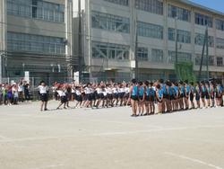 来週8日(水)に迫った陸上大会の壮行会がおこなわれました。全校児童が見守る中、次々と種目が行われました。