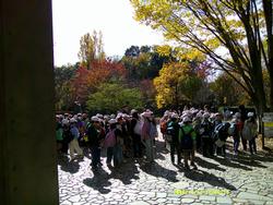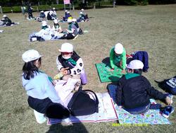 お昼は広い芝生広場で食べました。青空と紅葉のコントラストが美しく、日差しも気持ちいい中での食事で、子供たちの笑顔は絶えませんでした。