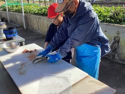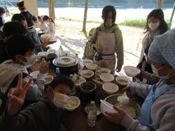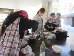 今回お世話になった「手賀の丘青少年自然の家」は、、使ったものを次に使う人のために原状復帰でお返しすることが重要なミッション。部屋の掃除や毛布たたみをきちんとしました。この日の1つ目の活動は「まが玉つくり」でした。ろう石をヤスリデ削って、目指す形にしていきます。最後は紐を通してできあがり。みんな満足な出来のようでした。2つ目の活動は「飯盒炊飯」。お家で練習してきた子供も多く、でも、ガスコンロも電気釜もない野外炊飯です。でき上がりは…とってもとってもおいしいご飯が炊け、おいしいY豚汁ができあがりました!仲間と作って仲間と食べたこのお昼ご飯のおいしさは、一生忘れることはないでしょう。
