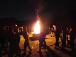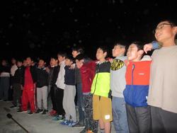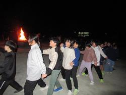 1日目は、クラスごとに出発したバスを「道の駅しょうなん」で3つのコース別に乗り換え、一路それぞれの目的地に向かいました。「農業」「釣り」「竹林」の各コースでお弁当も食べてから、いよいよ「手賀の丘青少年自然の家」で全体が集結しました。体育館で学年レクを楽しみ、いつもより早いであろう夕食をいただいて、さあ、キャンプファイヤーの時間です。5年生みんなの絆が強くなったことを実感できる感動的なキャンプファイヤーでした。