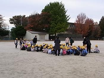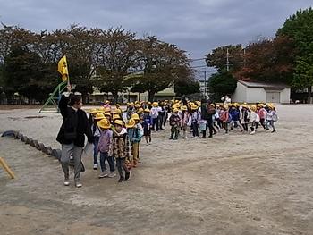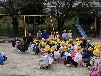出発の会及び、出発前の子どもたちの様子です。多くの子が余裕を持って登校し、予定通り学校を出発することができました。