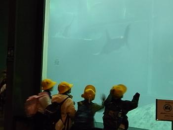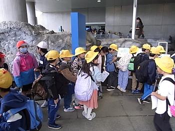 葛西臨海公園に到着し、水族園へ向かう子どもたちの様子と、施設内を見学する子どもたちの様子です。当日、葛西臨海水族園に来ていたバスの台数は100台を超えていたそうで、昼食前の時間帯には施設内に人が溢れていました。ですが、松飛台小の1年生はしっかりとグループで見学し、集合時間にもキチンと集合することができました。とても素晴らしい行動力でした。