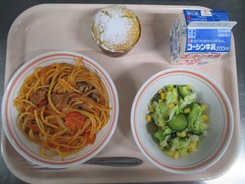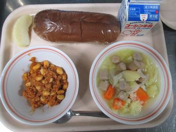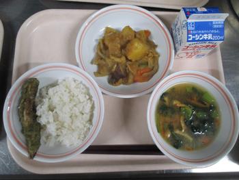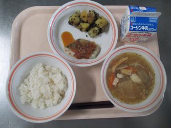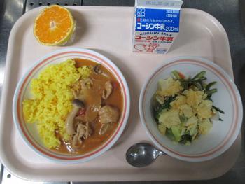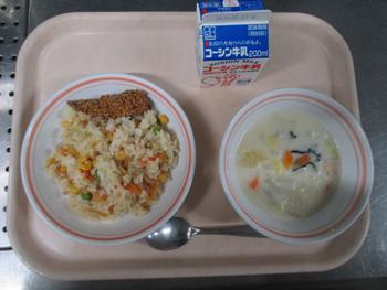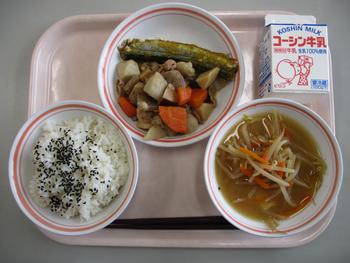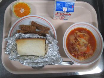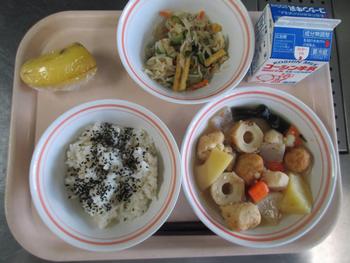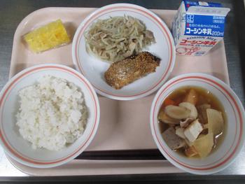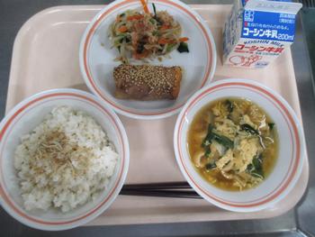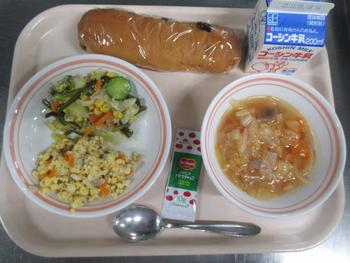 ※本日、給食室のオーブンが故障したため、献立にあった「オムレツふうたまごやき」が「ごもくいりたまご」に変更となりました。使われている食材については同じ物を使用しています。御承知置きください。