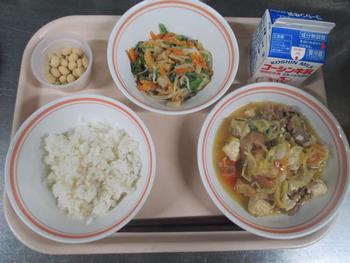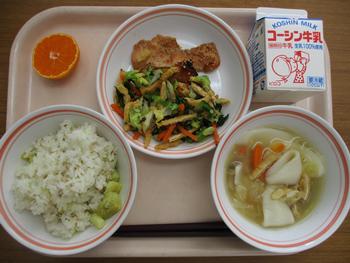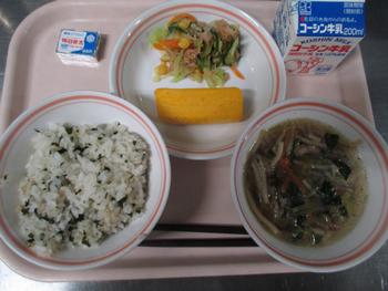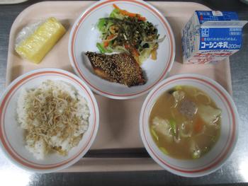 じゃこふりかけ:給食室手作りのじゃこふりかけは余計な味付けはせず、素材の美味しさを生かして作られ、ご飯と一緒にしっかり噛むことで、そのうま味を感じることができました。