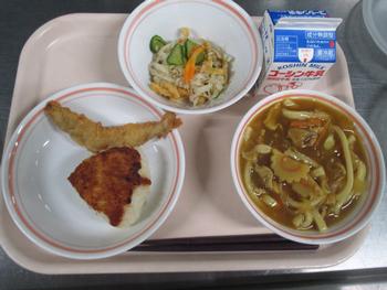 カレーうどん:香り良く仕上がったカレーうどんは、うどんが食べやすい長さにカットされていて、豚肉、なるとのうま味、玉ねぎの甘みがカレーの味に良く合うとても美味しい一品でした。