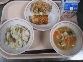 きのこごはん:しめじと舞茸が入ったきのこご飯は香りよく炊き上がり、具材にあさりも入ることでうま味が増し、とても美味しいご飯でした。