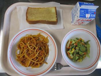スパゲッティーミートソース:スパゲッティーは食べやすい長さにカットされていて、ミートソースのうま味がスパゲッティーによく絡み、もう少し食べたくなるとても美味しい仕上がりでした。