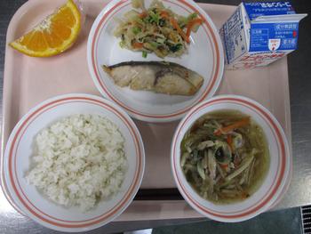 みそしる(ぶた・はくさい):豚のうま味がみそ汁に良く溶け、にんじんが入ることで彩りもよく、白菜にうま味がよく染みたとても美味しいみそ汁でした。