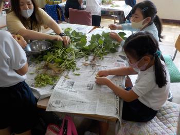 6月23日 本日の1校時、2年生が枝豆の皮むきを行いました。みんな一生懸命に皮むきに取り組んでいました。