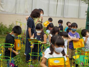 7月12日 今日は朝からいい天気です。1年生が育てている朝顔が、きれいな花を咲かせています。子どもたちは、熱心に観察をしていました。※写真は、先週に撮ったものです。