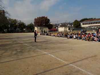 11月16日 今日は、業間休みに避難訓練を行いました。予告なしで実施したため、子どもたちは自分がいた場所から、それぞれ避難をしました。今日の訓練には、明和幼稚園の園児も参加しました。ほとんどの園児・児童が真剣に訓練に参加し、いい避難訓練ができたと思います。