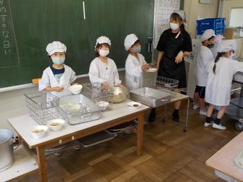 5月31日 今日は、6年生が調理実習で野菜炒めづくりを行いました。クラスの半分が家庭科室に入り、一人一調理の形で行いました。自分で作った野菜炒めの味は、格別だったようです。
