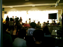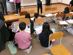 5年生の音楽の授業の様子です。手本となる曲をCDで聴き、曲を盛り上げるためには、どのように強弱をつければよいか、考えて話し合って、演奏の練習をしていました。
