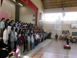 週末に降雪、積雪があり、道路状況が心配されましたが、朝にはほぼ溶けて、凍結もなく、一安心といったところでした。通学路の途中あちこちに、溶けて小さくなった雪だるまも見られました。昼休みには、ダンスクラブの発表がありました。楽しく練習に取り組んだ様子が伝わってきました。見に来てくれた子供たちも、とても楽しい雰囲気になっていました。