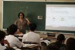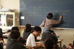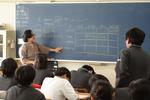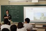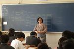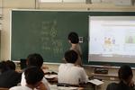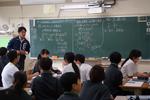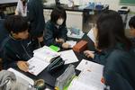 1年生の数学では、比例を使った課題に取り組んでいました。15分後に始まるショーに合わせてポップコーン屋さんに並んでいます。最初20番目でしたが、5分後に13番目になりました。あなたなら並びますか?という面白いものでした。計算で求める推計値は求まっても、やっぱり並ばないという生徒も自分の意見を述べており、比例を実生活で活用できる場面を学ぶとともに、計算通りにいかないのも現実であることを確認したりして、とても盛り上がった学習でした。