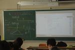 1年生の数学では、おうぎ形について学習しています。決められた半径の円の面積、円周の長さから、中心角をもとに計算しています。グループで取り組んだ後、理解できた生徒がミニティーチャーとして教えにまわっています。先生を呼ぶより簡単にわからないところを聞くことができ、教える側も理解が深まり相互に学び合いが進みます。