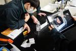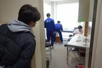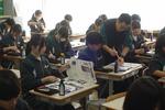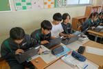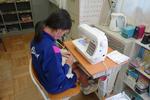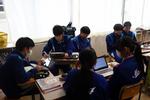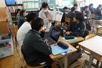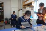 1年生の家庭科では、たま止め、ボタン付けを学習しています。動画で確認しながら作業しています。それぞれの進度が違っても、自分の課題にコツコツと取り組んでいます。