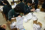 3年生の社会科では地方自治について学ぶ単元で、市長選挙に立候補し、政策立案と公約をグループで検討し合っていました。選挙ポスターも格好よく仕上がっています。金曜日の発表に向けて大詰めを迎えているようです。