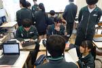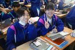 3年生の英語では授業の最初に受験対策の英単語をKahoot!でゲーム対戦形式で学んでいました。「声に出してやってごらん」と言われて小さな声でも発音している生徒が増えていました。ゲーム感覚で楽しく取り組んでいました。