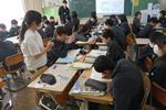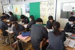 3年生の国語の様子です。eライブラリで練習問題・ワーク・課題プリントに取り組む生徒、それぞれが自分の課題にきちんと取り組んでいます。すでに茨城私立の出願が始まり、来週には私立高校の入試相談をひかえ受験シーズンに入ったことを実感している3年生は、どのクラス、どの教科でも落ち着いて課題に取り組んでいます。