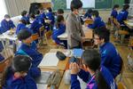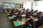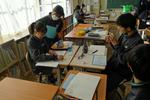 1年生の国語では「書写」の硬筆の単元です。身近な人に年賀状を書いています。1クラス目は鉛筆で丁寧に書いていました。2クラス目は筆ペンやサインペンで清書していました。バランスを考えながら縦書きをするのは本当に難しいですね。書写ということで字の練習にもなりますが、文面を考えたり、葉書に書くという難しさ、年賀状という文化を学ぶこともできる学習です。