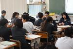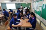 2年生は総合的な学習の時間で、修学旅行についてのteams配信集会を行いました。今回は修学旅行実行委員の募集で、実行委員に必要な資質・能力について説明がありました。責任感・建設的な話し合いができること・集団を優先する心、これらを大切にできる実行委員会が立ち上がれば、実りある修学旅行にできるはずです。主体的に学ぶ、行動する最高学年に向けて動き始めました。 1年生の社会科では、東南アジアに日本の向上がたくさんできた理由について、資料から考える学習でした。グループで考えて、クラスの前で発表、付け足しの説明もありました。解った生徒は、わからないグループや友達にミニティーチャーとして説明に動いていました。「じゃあ、賃金が上昇したら工場はなくなってしまうのかな?東南アジアの人たちにとってのメリットはどこにあるのかな?」など深く考えているグループが見られました。