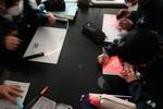 その後1年生は、探求学習に取り組みました。鎌倉と松戸を比較して、より良い松戸のためにグループで話し合っています。