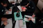 1年生の理科では「光の性質」のまとめ、作図に取り組んでいました。反射、屈折、レンズなど自分の目では意識しないで見ていることでも、作図してみると理解が深まります。みんな一生懸命に取り組んでいました。