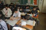 午後に3年生の全体進路検討会が行われました。管理職、各学年主任も参加して3年生一人ひとりの進路希望と現在の状況とを照らし合わせての会議です。どの高校で何を学びたいのか、どんな高校生活を送って、その先にどうつなげていきたいのか、将来はどのような社会人になりたいのか、1・2年生にも1年後、2年後にやってくる進路選択です。3年生だけでなく、1・2年生のご家庭でも話題にしていただきたいです。 2年生の社会科では、享保の改革と田沼の改革を比較するグループ学習に取り組んでいました。それぞれの政策の良い点、悪い点を付箋に書きだして、たくさんの意見交換をしていました。「賄賂政治なんて悪いことしかない」「でも儲かる商人と政治家はおいしい」なかなか面白い意見が飛び交っていました。それぞれのプレゼンテーションがどんな風に仕上がるか楽しみです。