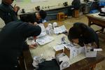 9組作業学習の様子です。手工芸班はペンケースの他、ポチ袋の作成をしています。木工班は踏み台作り、縫製班はティシュケース、刺繍、チャック付きポーチ等いろいろな作品づくりに励んでいます。1月の授業参観で校内販売会を計画しているので、みんなで一生懸命がんばっています。販売会についての詳細なお知らせは、後日ご案内します。
