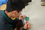 2年生技術科「コロックル」の作成です。はんだ付けも終わり、組み立てて完成している生徒も見られました。LEDが光って、音楽が流れたり、いろいろなセンサーで反応を変えていました。この後はプログラミングに発展していく模様です。ドライバーを回すのが苦手な生徒も見られて、技術科の授業がいかに生活に結び付いているかを実感しました。