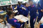 1年生の英語では、感嘆文を使ってペアで会話をする活動をしていました。テンポよく移動してペアを変えていき、いろんな友達と楽しそうに会話をしていました。