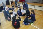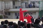 1年生は学年レクを行いました。校庭を使って宝探しゲームをしていました。集計時間にウルトラマンとウルトラマンタロウがやってきて、みんなでアルゴリズム体操をしました。寒空の下ですが、心は温まる楽しい時間でした。