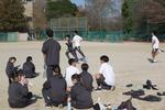 1年生の保健体育では、ソフトボールとソフトテニスに取り組んでいます。ソフトボールでは、ティーバッティング(ティー台にボールを置いて打つこと)の技能テストをしたり、守備練習、キャッチボールを楽しそうにしていました。最初の頃はボールの投げ方も取り方も、塁の進み方もわからない状態だったのが、ベースボール型の球技を楽しむレベルに成長してきていました。ソフトテニスはコートで団体戦を始めていました。チームで作戦会議をして出るペアと出る順番を決めて、しっかり審判も担当しています。まだまだボールの落下点と打点が読み切れず空振りも多いようです。ボールの勢いとバウンドを読むのは難しいです。難しいけどうまくいったときの喜びをしっかり味わって楽しく取り組んでいます。