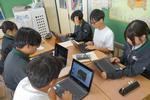 2年生の理科、気象分野の自由進度学習です。パワーポイントで作成したスライドを発表と同様にグループの仲間に説明をしているところです。インターネットから資料作りを進めているため、分かりやすくまとまっているように見えますが、「それってどういう意味?「「なぜ、その現象が起きるのか説明できる?」と聞いてみると、まだまだ理解が深まっていない部分に気づいて調べ直していました。これからの深まりに期待です。