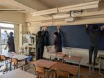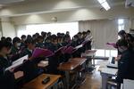 各学級では終業式らしく正しい姿勢で放送を聴いていました。無伴奏でも各学級の指揮者にあわせて校歌が響いていました。