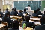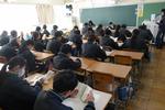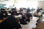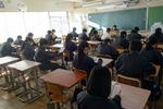 授業参観は、受験生の体調への配慮から、学年ごとに対象保護者を設定し、3年生保護者以外は3年生フロアへの立ち入りを制限させていただきました。1校時は3年生保護者、2校時は新入生と新入生保護者、3校時は1・2年生保護者の参観でした。3年生にとっては中学校最後の授業参観となるため、1校時から大勢の保護者が来校していました。