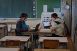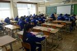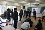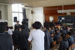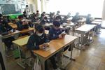放送での始業式です。教室では真剣な表情と姿勢で校長先生の話を聴いていました。各教室での無伴奏校歌も今回が最後となるはずです。早く体育館工事が完了して、全校生徒が声を合わせた校歌が聴きたいです。生徒会からの話は、別ページに掲載しました。