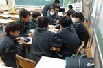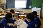 2年生の理科では「天気とその変化」の単元では、2学期後半からグループ別学習を進めています。今回はグループ内での中間発表をしていました。わかりやすく発表するにはどうしたらよいのかをお互いにアドバイスし合っていました。「文字が多いから読むのが大変」「要点だけを大きく表示すると良い」「字の色を変えて強調すると見やすい」など、発表の質を高めようとしています。学習内容も、教科書をよく読みこんでいるため、かなり深まってきているようです。人にわかりやすく伝えるためには、まず自分が深く理解することが大切なことを改めて実感したようです。
