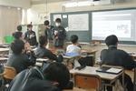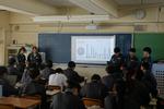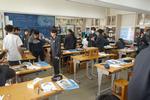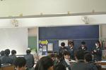 午後は2年7組の公開授業が行われました。理科「天気とその変化」の単元の「第2回中間発表」でした。市内各学校から大勢の先生方が見学に来ていました。第1理科室、生徒より先生方の方が多いくらいで、驚きの光景でした。授業の中で行われる生徒のプレゼンテーションの上手さに感心されている先生方がたくさんいました。教科書をしっかり読み込んで内容が理解できている生徒の発表はかなり分かりやすく、聞いている側も納得のプレゼンテーションでした。さらに良いものにするために評価を入力する作業も慣れたものでした。生徒下校後には先生方の部会が第2理科室で行われていました。