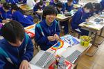 2年生の技術科では、コロックルという教材をPCに接続して、プログラミングを行っています。音や光を出す順序やタイミング、継続時間等を順序立てて命令を作成するものです。キーボードでメロディーを作成して読み込む生徒もいて、どんどん進化する授業でした。