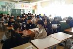 3校時に体育館では入学予定者説明会を、3年生教室では3年生の先生方による「社会科」の新入生体験授業を行いました。都道府県ごとの平均年収の違いと人数でシミュレーションや議論をする学習内容でした。短い時間でも中学校の教室と机で行ったことで、少しでも中学校入学への心の準備ができたでしょうか?4月のご入学を教職員一同、心よりお待ちしています!