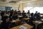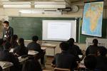 1年生社会科の授業では、「アフリカ州が抱える課題について考えよう」という学習内容でした。私たちができる支援を考えた時、物資や金銭的な支援については「支援に依存してしまう。自立できない。」という意見が出ていました。先生からは「だから私は社会科の先生になった。そして多くの中学生にこの現状を知ってもらい、どんな支援ができるかを考えてもらい、行動できる大人になってもらう。他力本願のように聞こえても、間接的ではあるが私にできる支援だと思っている」と熱のこもった意見表明がありました。その後は、生徒たち一人一人が、これから将来にわたって、どんな支援の方法があるのかを考えてみよう!という課題が出ました。その後は全員が真剣に考えて、プリントに記入していました。知識としてアフリカの貧困を学び、自分事として何ができるかを真剣に考える学習でした。