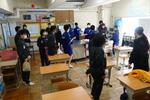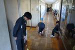 一中の朝は清掃から始まります。一人一役、自分の分担を黙々と丁寧に磨き上げています。ビニールタイル床は冬場の静電気で拭いてもすぐにホコリが付着する大変さをものともせず、隅々まできれいにしていました。清掃の後は教室の自席で朝読書です。この時間は学校とは思えない静寂が訪れます。短い時間でも活字に触れ、本の世界に入り込む。全国学力学習状況調査の結果にも読解力の向上が見られる一中の大きな取り組みです。毎日、この時間を落ち着いて過ごすことの積み重ねが、3年後には大きな力となっているはずです。