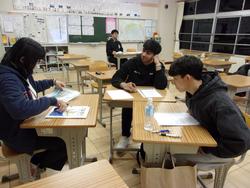 3年生は高校受験に向けてがんばっています。 この日は、面接の流れを学びました。 そして、面接で想定される質問の答えを、先生方と一緒に考えました。 |