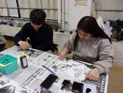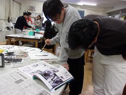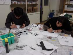 前回に続いて水墨画に取り組みました。 前回、竹を描いた経験を生かし、今回は自分でテーマを決めて描きました。 花、魚、風景などを、集中して描く姿が見られました。 |