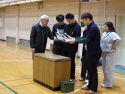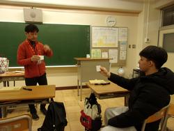 今日の4時間目は、みらいタイムということで、ドローン体験、手品体験、筋トレとういう内容から生徒が選んだ体験をするものでした。手品と筋トレは、みらい分校の先生でその分野の得意な先生の指導で行いました。手品の技術を実際に体験しお互いに実演しました。筋トレでは5種類のトレーニングを行い、様々な筋肉を使いました。体育館でのドローン体験は、近隣のドローンスクール、ボーダレスフィールド・ホールディングスから2名の指導者にドローンとともに来ていただき、実際に生徒が操縦をしました。最初は、ぎごちない動きでしたが操作を丁寧に教えていただき、ドローンを飛ばしながら操作画面に周囲の様子を写すことができました。どれも楽しい体験でした。 |