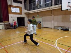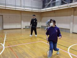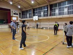今日のバドミントンで3年生の体育の授業は最後です。また、来年度の入学希望の生徒たちも体験ということで、在校生とペアを組んで参加しました。今日は、試合を多く組んで練習の成果を競いました。得点が入るたびにあちこちから歓声が上がっていました。 |