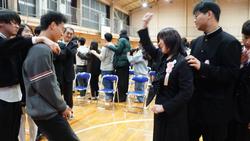 卒業式に続き、卒業を祝う会をおこないました。卒業生の司会によるレク大会、1・2年有志による手品やダンスに続いて、先生方のダンス・歌と進みました。最後に卒業生が思い出や別れの言葉を一人ずつ発表しました。笑いや歓声の出るシーンもありましたが、最後は別れを惜しむ参加者みんなの気持ちが会を静かに締めくくりました。 |