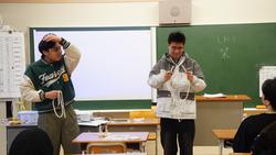 みらい分校では、授業前に全生徒が集まっての学級活動があります。生徒による出席確認の後、日直の話、先生からの日程説明と続く中で、誕生日を迎えた生徒の紹介が恒例となっています。今まで手品の得意な先生のマジックで誕生日の紹介を行っていましたが、最近、先生に弟子入りした生徒によるマジックの実演で祝うようになりました。内容も回を追うごとに複雑なネタが披露できるようになってきました。 |